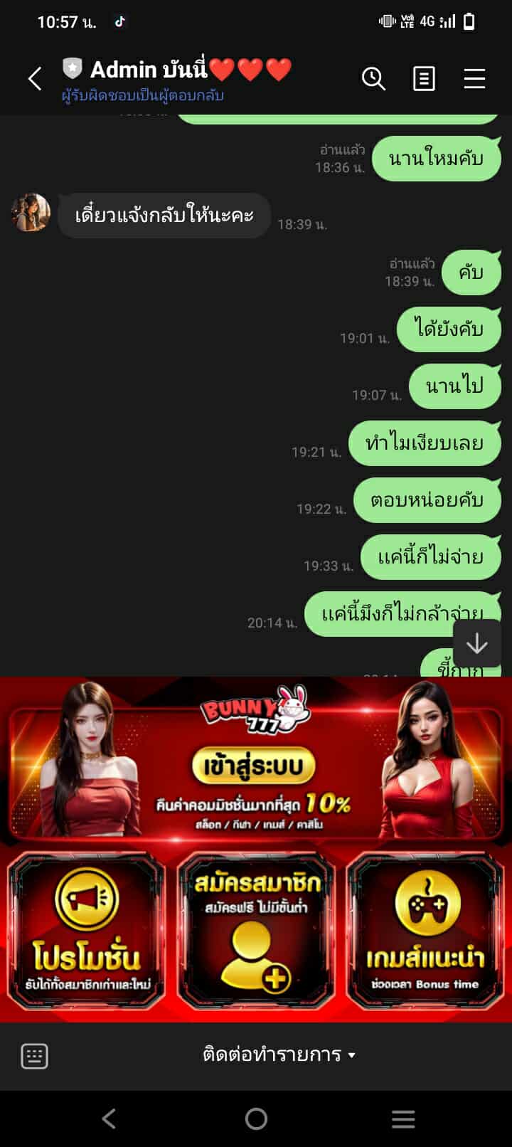 รายละเอียดของการโกง :  ประจานเว็บโกง BUNNY777  โกงยอด 2,400  เล่นมาเพิ่งเคยถอนครั้งแรกก็โดนเลย ถอนปุ๊ปลบยูสปั๊บ ไลน์ไม่อ่านไม่ตอบ